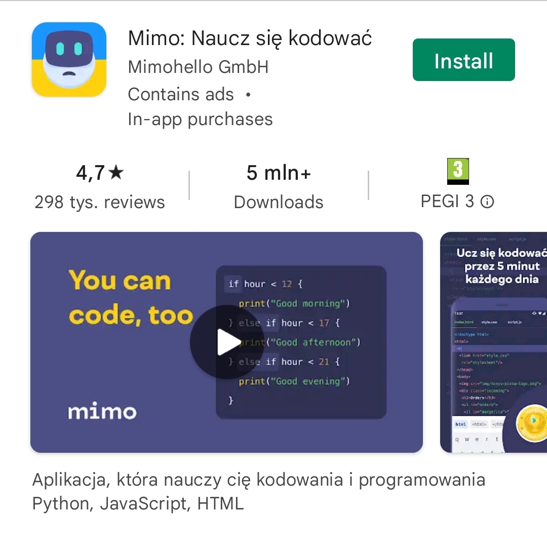 Open Google Play Store and look for Mimo. Once you find it, click on the