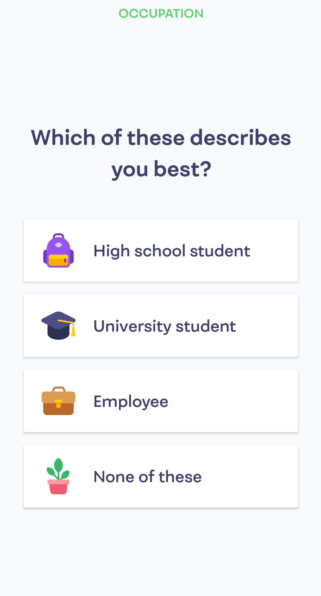 Choose the option that decribes your occupation from the following