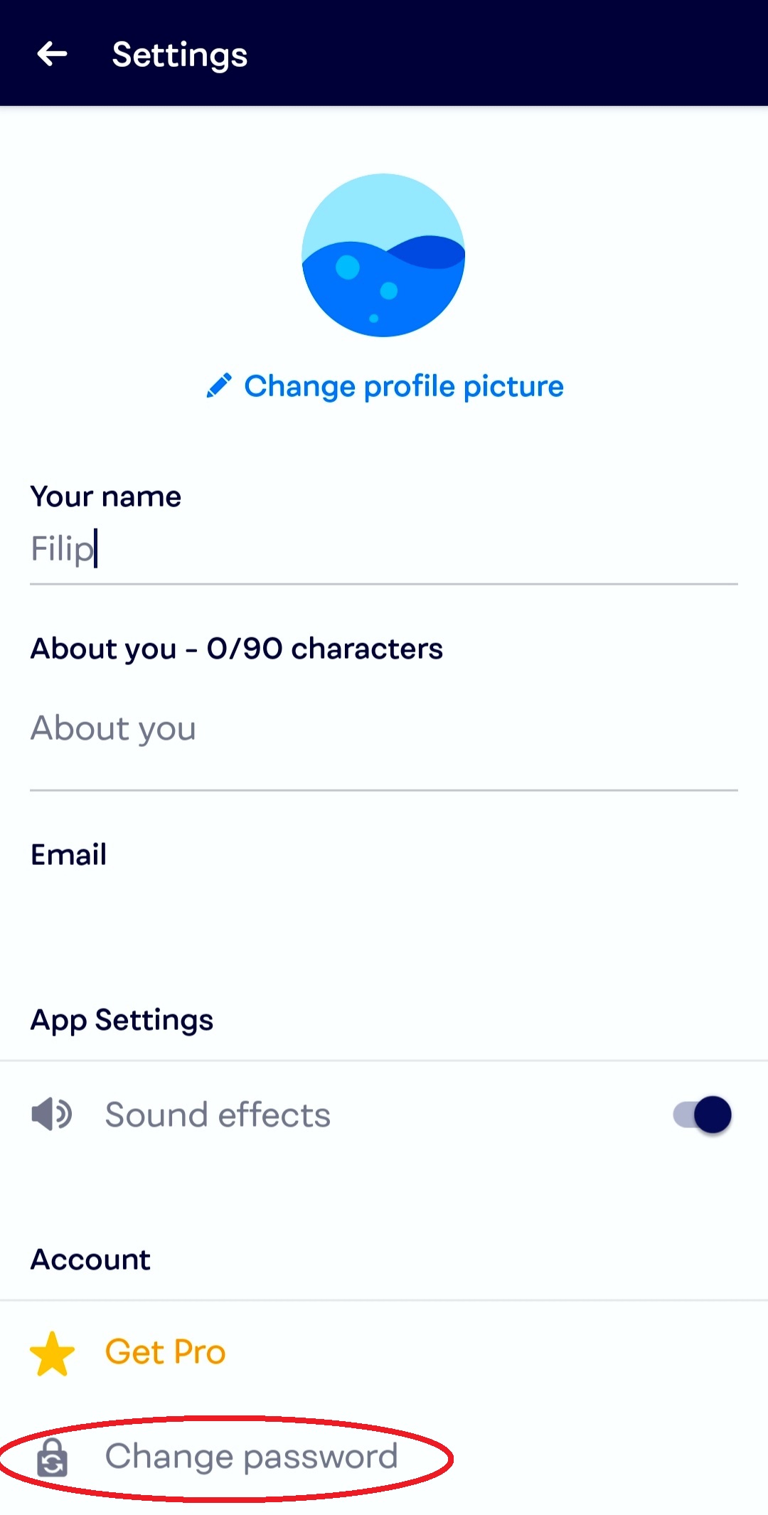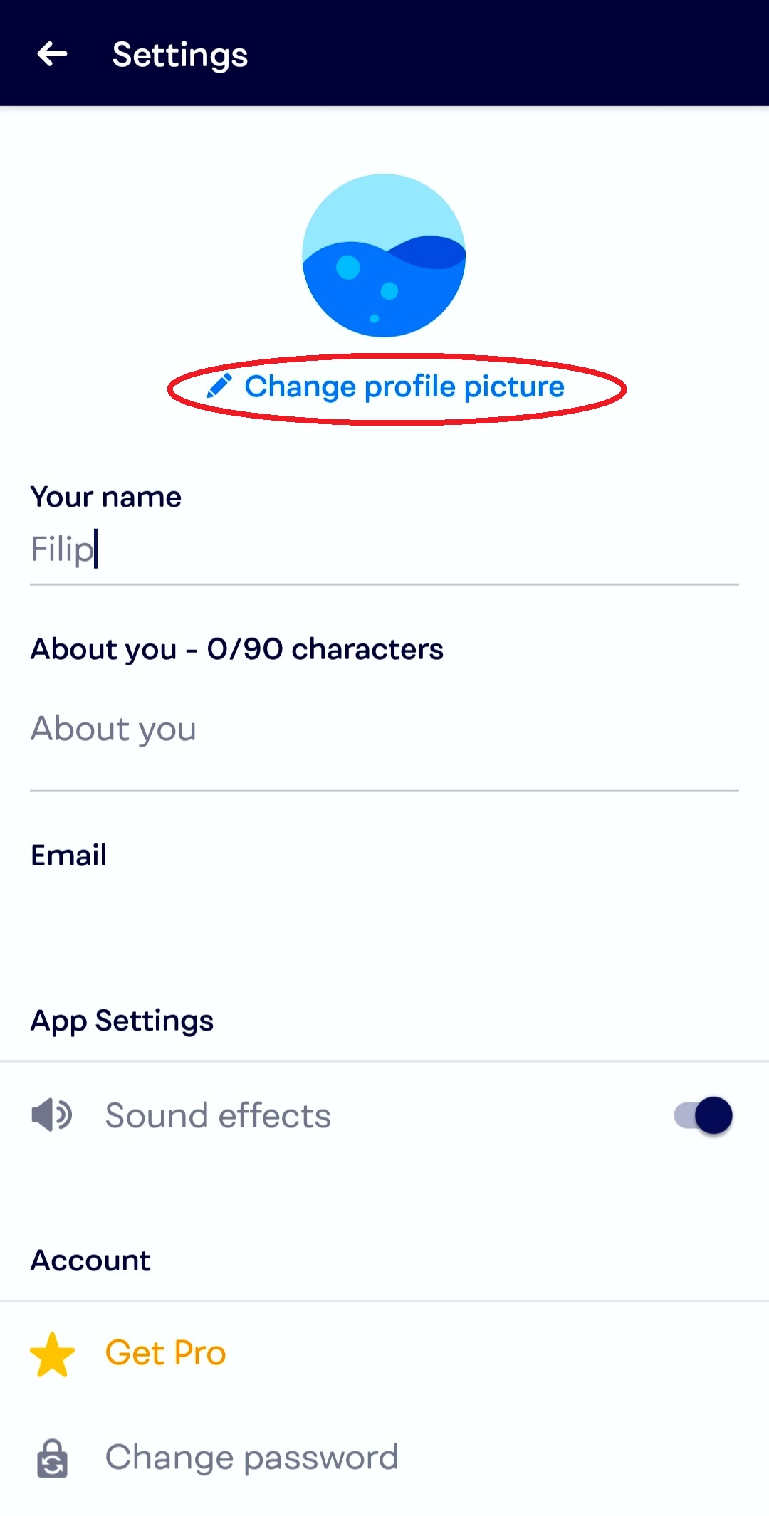 How to change the settings (changing the profile picture; switching off the sound effects; password reset; deleting the account; logging out)