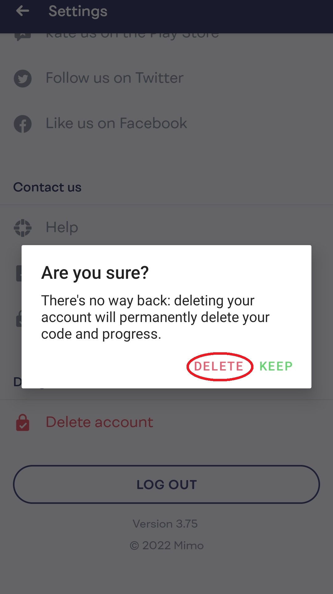 Delete account.